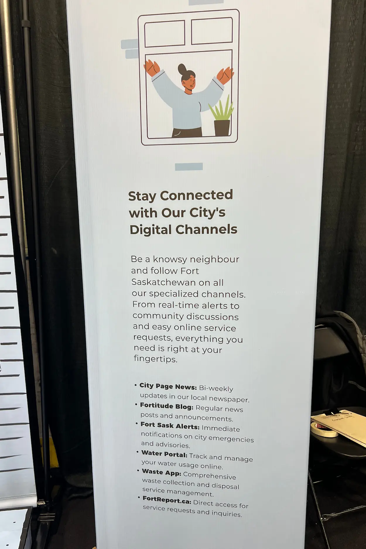 The City of Fort Saskatchewan needed a tradeshow booth that would effectively educate residents about their various communication channels. The booth needed to be budget-friendly, easy to transport, inviting, informative, and include an integrated "Insta Booth" for social media engagement.